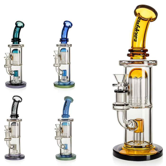Виготовлений із міцного боросилікатного скла товщиною 5 мм, що гарантує довговічність і стійкість до перепадів температур. Вбудована система Double Arms Perc ефективно фільтрує та охолоджує дим, роблячи затяжку м’якою та приємною.