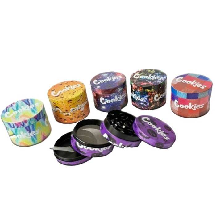 Стильний логотип "Cookies" і різноманіття кольорів роблять гріндер сучасним і естетично привабливим.