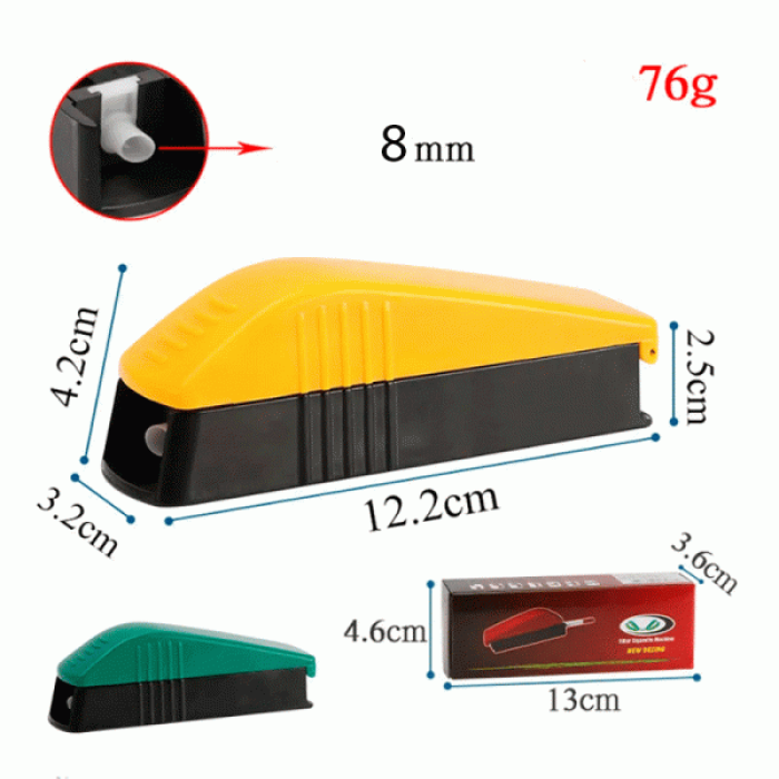 YN-2 — це компактна машинка для набивання гільз діаметром 8 мм, яка дозволяє швидко та рівномірно заповнювати тютюнові гільзи. Завдяки ергономічній формі та нековзкій поверхні пристрій зручно тримати в руці, а процес набивання стає максимально легким і акуратним.