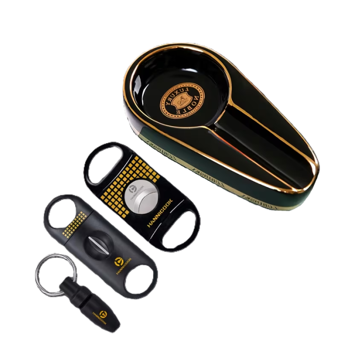 Елегантний подарунковий набір Luxury Noble об'єднує чотири необхідні аксесуари для куріння сигар: класичну попільничку, дирокол і дві гільйотини різного розміру. Комплект виконаний у стриманому дизайні, що підкреслює статус і витонченість, роблячи його чудовим вибором для щоденного використання або як подарунок.