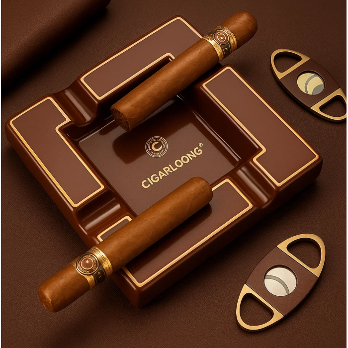 Попільничка для сигари CIGARLOONG (Коричнева) – вишуканий аксесуар, створений для справжніх поціновувачів сигар. Виготовлена з міцної кераміки, вона поєднує елегантний дизайн та практичність. Чотири зручні виїмки дозволяють розмістити одразу кілька сигар, що робить її зручним рішенням для використання вдома, у кабінеті або лаунж-зоні. Коричневий корпус із золотистими деталями створює теплий та благородний образ, підкреслюючи стиль і статус власника.