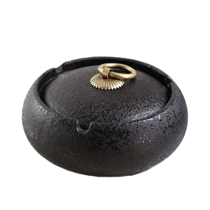 Попільниця кругла керамічна з кришкою (Чорна) — стиль та зручність у щоденному використанні