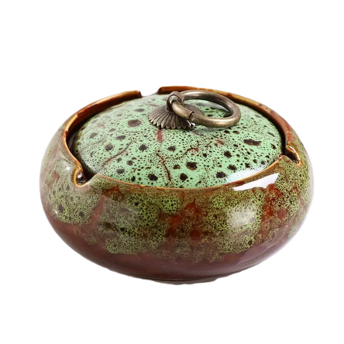 Попільниця кругла керамічна з кришкою (Зелена) — яскравий акцент та практичність у використанні