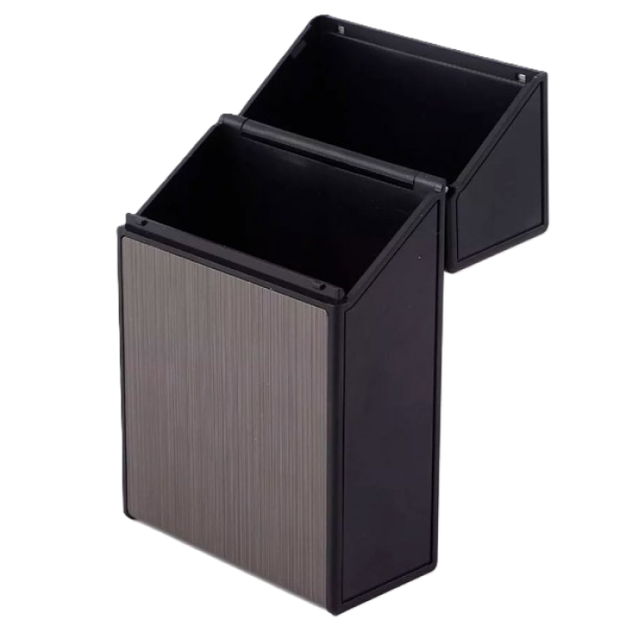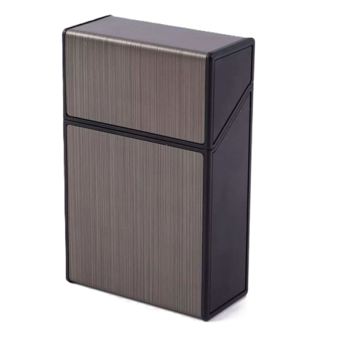 Корпус портсигара виготовлений із міцного металу або якісного пластику, що забезпечує довговічність та надійність використання. Завдяки точним розмірам він ідеально підходить для стандартних сигаретних пачок, не додаючи зайвого об’єму.