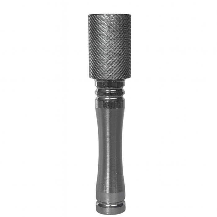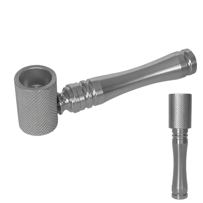 Трубка має міцний металевий корпус із характерною фактурою, що забезпечує надійний хват та привабливий зовнішній вигляд. Розбірна конструкція дозволяє легко очищати внутрішні елементи та забезпечує довговічність аксесуару. Сріблястий відтінок робить модель універсальною та доречною як для домашнього використання, так і для переносного формату.