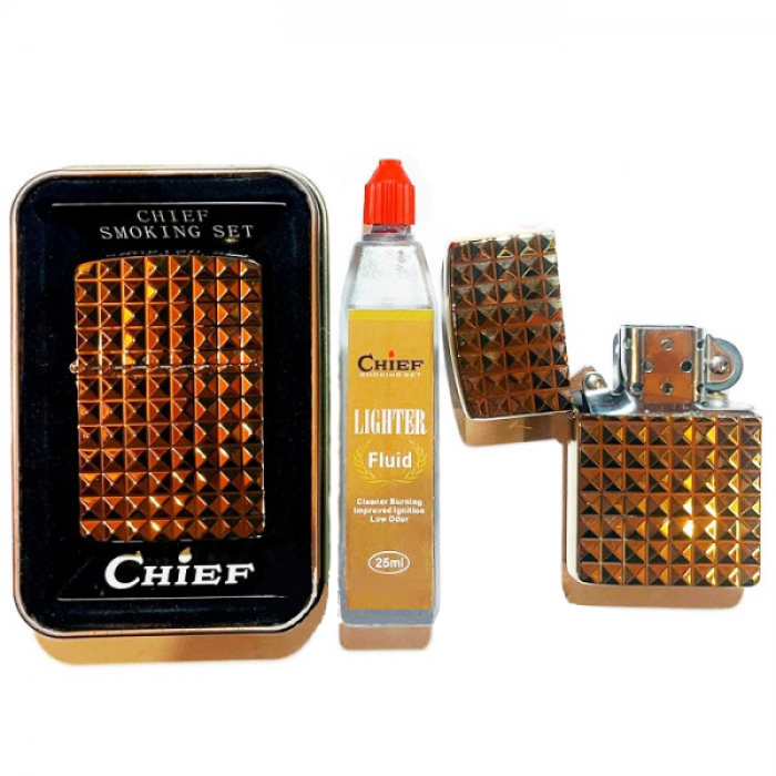 Запальничка бензинова Chief “№3” (набір) доступна в інтернет-магазині Смоки Шоп (smokyshop.com.ua) з гарантією якості, швидкою доставкою по Україні та зручними варіантами оплати.