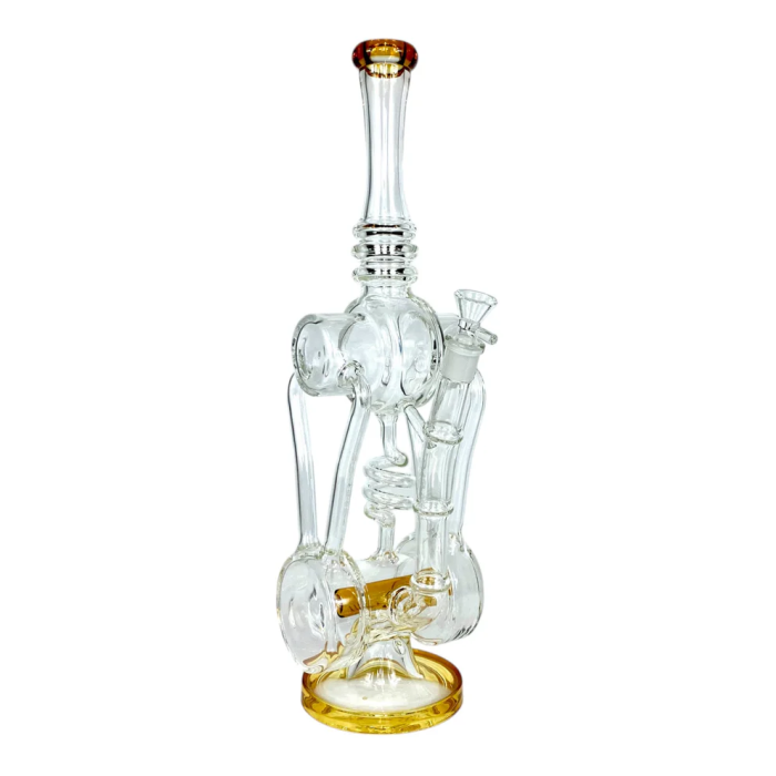 Конструкция типа Recycler позволяет жидкости многократно циркулировать внутри системы, очищая дым и делая вкус более мягким и насыщенным. Прозрачное стекло высокого качества подчёркивает изысканный дизайн і технічну складність форми, роблячи цей бонг не лише функціональним, а й стильним елементом будь-якої колекції.