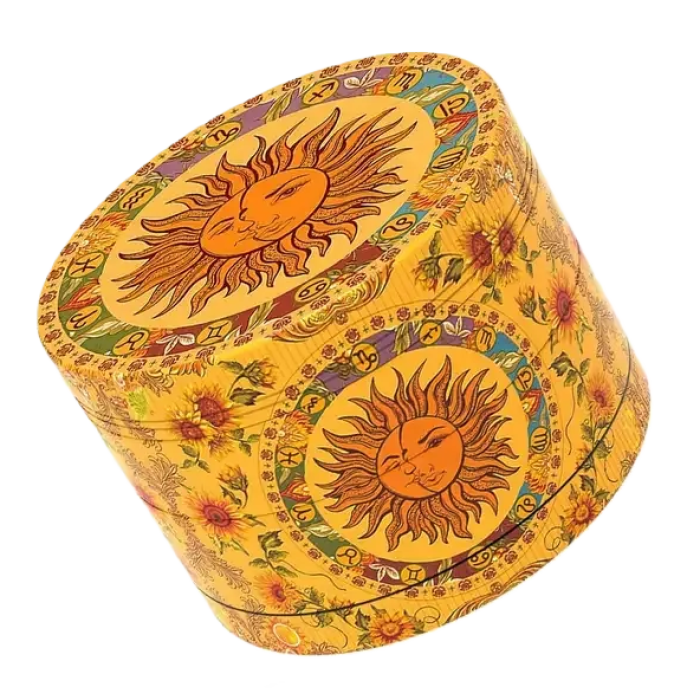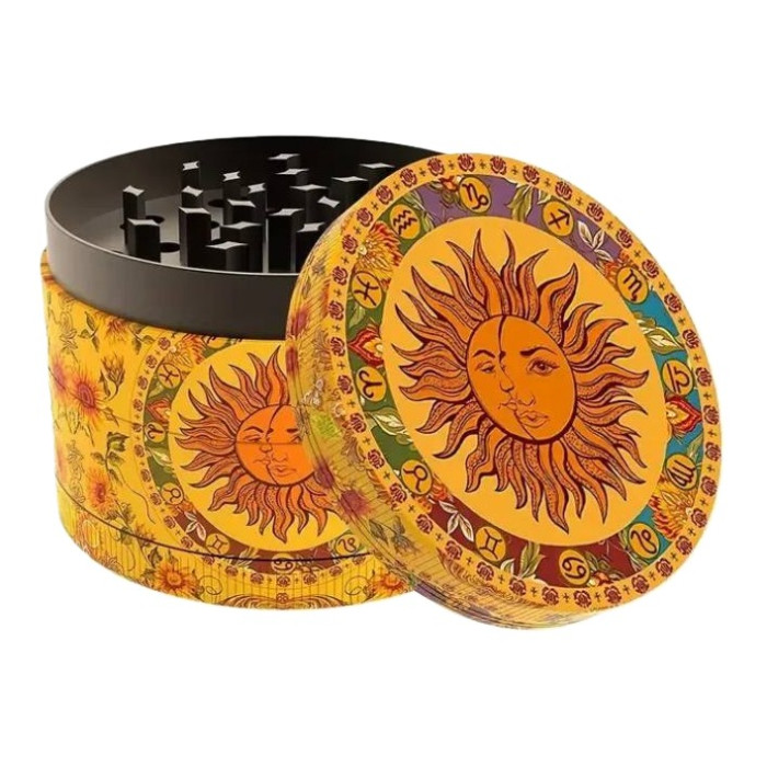 Гриндер "Дерево жизни" Солнце — это яркий и функциональный аксессуар для измельчения табака, выполненный в прочном металлическом корпусе с декоративным принтом в виде солнца. Благодаря своей надежной конструкции и удобному размеру он станет отличным помощником как дома, так и в дороге.