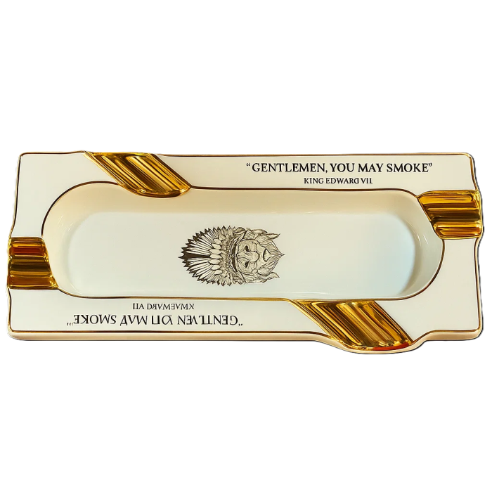 Пепельница для сигар Lubinski Big (Белая) – роскошный аксессуар, созданный для настоящих ценителей табачной культуры. Изготовлена из прочной керамики, она сочетает элегантность и практичность. Четыре удобных углубления позволяют комфортно разместить несколько сигар одновременно, что делает её идеальной для дружеских встреч или лаунж-зон. Белый корпус с золотистыми элементами придаёт изделию изысканный вид, а декоративный рисунок индейца добавляет характер и уникальность.