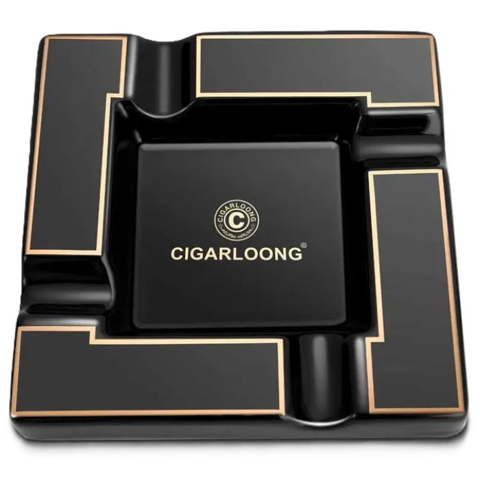 Пепельница для сигары CIGARLOONG (Чёрная) – стильный аксессуар, созданный для настоящих ценителей табачной культуры. Изготовленная из прочной керамики, она сочетает в себе элегантность и практичность. Четыре удобных выемки позволяют комфортно разместить несколько сигар одновременно, что делает её идеальным выбором для домашнего использования, лаунж-зон или дружеских встреч. Чёрный корпус с золотистыми вставками подчёркивает современный дизайн и придаёт изделию роскошный вид.