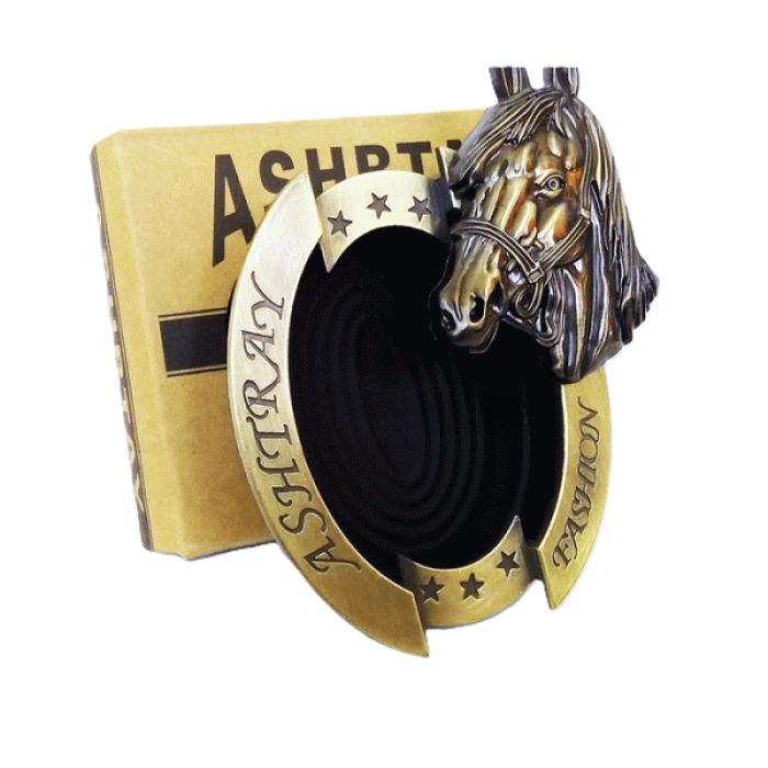 Пепельница гармонично впишется как в домашний интерьер, так и в офис, бар или кафе. Благодаря декоративному оформлению в виде коня и подковы, она также может символизировать удачу и благополучие.