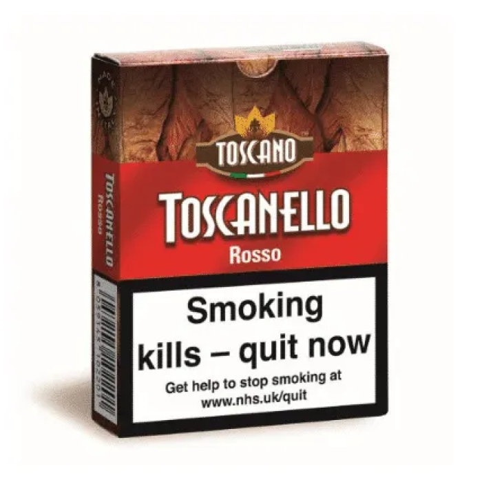 Toscanello Roso — это сигары машинной скрутки, произведённые в Италии из ферментированного тосканского табака с тёмным покровным листом. Обладают более насыщенным, слегка пряным вкусом и ярким табачным ароматом. Подходят для курения в течение короткого времени и не требуют подготовки — готовы к употреблению сразу после открытия.