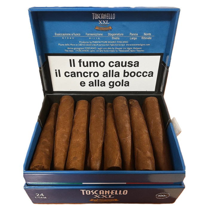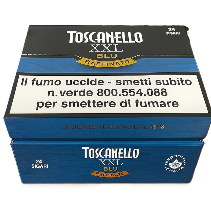 Toscanello XXL Blu Raffinato — премиальные ароматизированные сигары от Manifattura Sigaro Toscano, выпущенные в 2024 году. Сочетают табак Kentucky с анисовым ароматом и подслащённым срезом — мягкий, изысканный вкус.