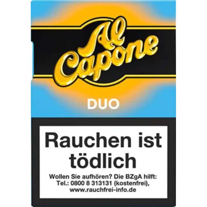 Al Capone Duo — это ароматизированные сигариллы, которые сочетают интенсивный табачный характер с нежным сладко-солёным ароматом карамели. Вкусовая композиция построена на контрасте: тёплая сахарная нотка плавно переходит в лёгкий солёный оттенок, подчеркивая глубину табака и создавая уникальный послевкусие.