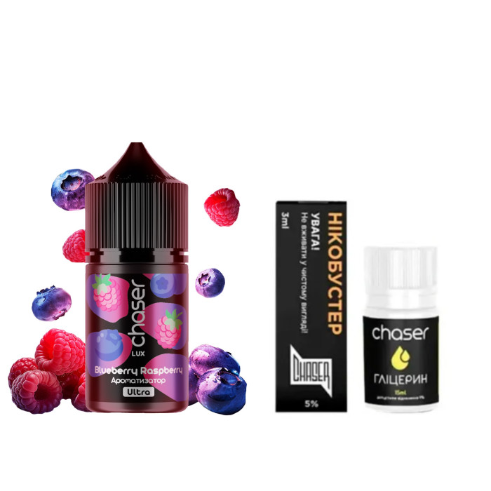 Набор для самозамеса Chaser LUX 30 мл "Blueberry Raspberry" со вкусом Черника Малина — всё для яркого отдыха и насыщенных впечатлений