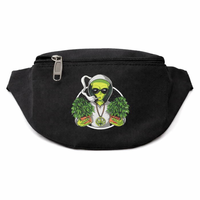 Практична поясна сумка для щоденного використання. Міцний синтетичний матеріал добре тримає форму, стійкий до зношування та підходить для активного міського ритму. Лаконічний чорний колір у поєднанні з принтом «Прибулець» додає образу індивідуальності та легкого футуристичного настрою.
