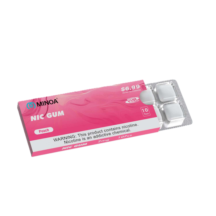 Нікотинові жуйки в пластинках Minoa Peach (Персик) — це жувальні жуйки з нікотином, що містять 2 мг нікотину в кожній жуйці, розроблені для тих, хто прагне контролювати споживання нікотину або зменшити його дозу. Зі смачним і соковитим ароматом персик, ці жуйки забезпечують приємний і освіжаючий досвід. Вони ідеально підходять для людей, які хочуть поступово відмовитися від куріння або знизити залежність від тютюну.