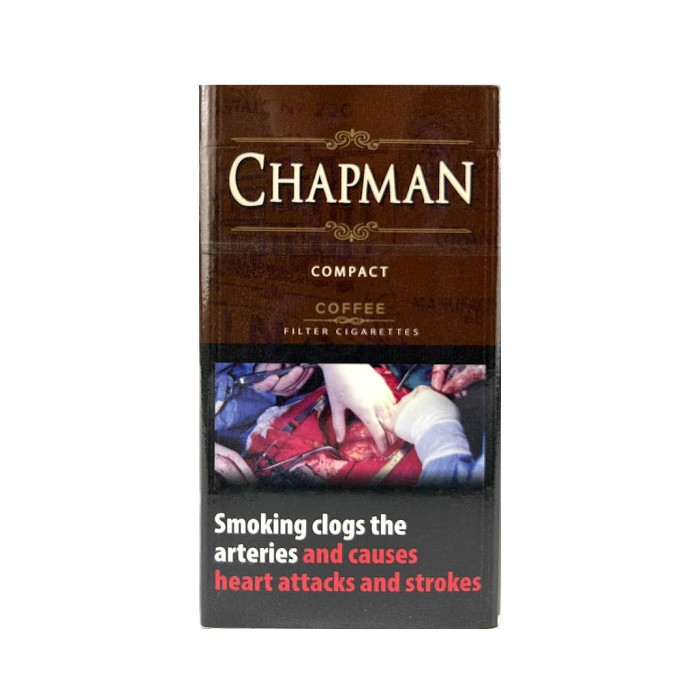 Chapman Compact Coffee — це стильні сигарети формату compact, у яких преміальна тютюнова суміш поєднується з насиченим кавовим ароматом. Глибокий, м’який смак із характерними нотами обсмажених зерен створює приємне післясмак і додає особливого шарму.