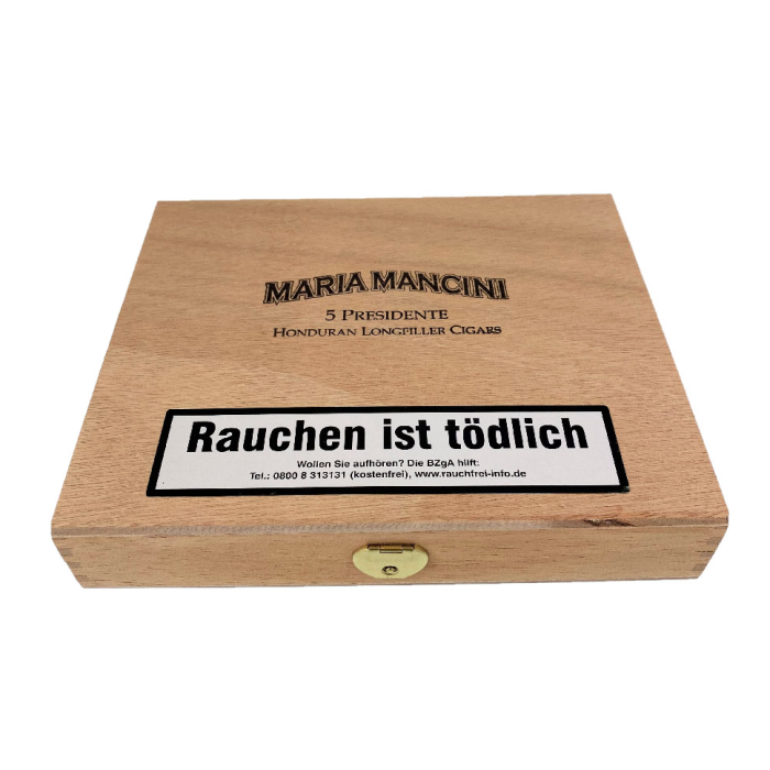 Maria Mancini Presidente — це сигари ручної скрутки (long-filler), виготовлені повністю з гондураського тютюну. Вони відзначаються середньою міцністю та гармонійним смаком з відтінками дерева, горіхів і легкої пряності. Завдяки формату Presidente дарують тривале куріння та насичений аромат.