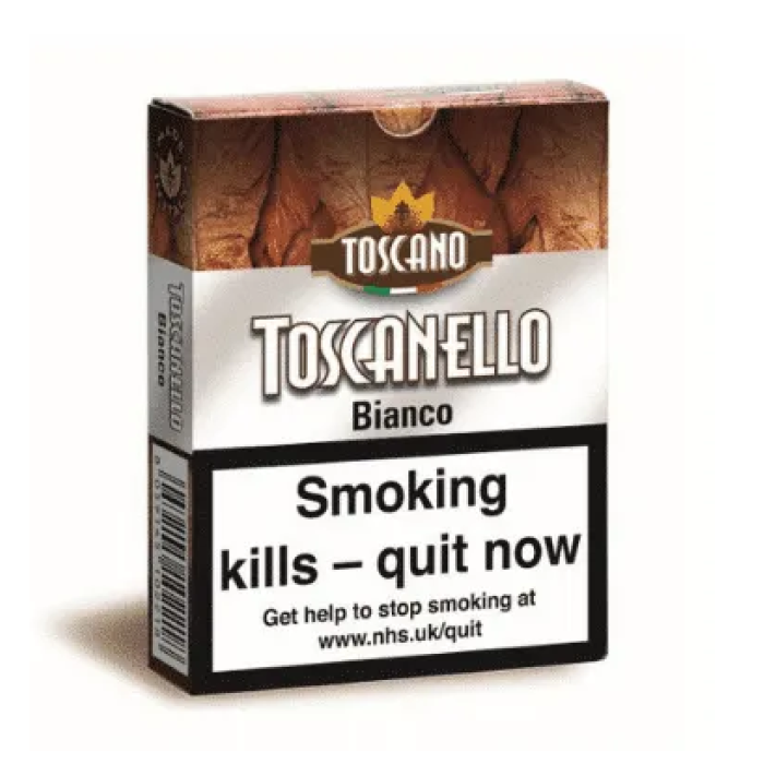 Toscanello Bianco — це сигари машинної скрутки, вироблені в Італії з ферментованого тосканського тютюну з блідим покривним листом. Мають м'який смак із легкими пряними нотами і ніжним натуральним ароматом. Підходять для коротких перерв — готові до куріння одразу після відкриття.