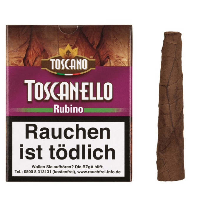 Toscanello Rubino — це короткі сигари машинної скрутки, виготовлені в Італії на основі ферментованого тютюну тосканських сортів. Ароматизована версія Rubino вирізняється незвичним фруктово-пряним характером, що помітно відрізняється від класичних тютюнових варіацій лінійки Toscanello. Підходять для неспішного повсякденного куріння та готові до використання одразу після відкриття упаковки.