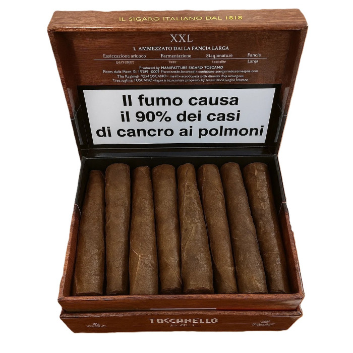Toscanello XXL — це сучасна інтерпретація легендарних італійських сигар Toscanello, створена для тих, хто цінує більш тривале та насичене куріння. Вони зберегли традиційну рецептуру з тютюну Kentucky, але отримали збільшений формат і різноманітні ароматизовані варіації.