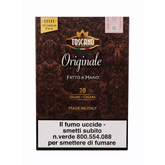 — 20 сигар Toscano ORIGINALE у фірмовій упаковці, що зберігає аромат і якість кожної сигари.