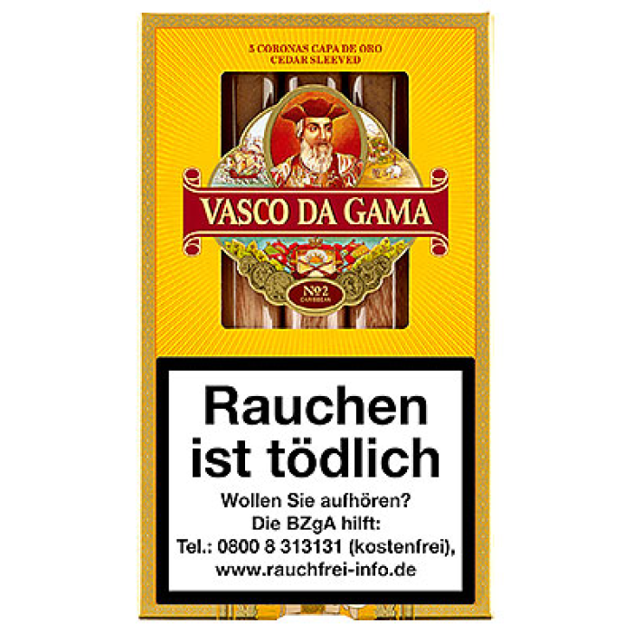Vasco Da Gama №2 Caribbean — це преміальні сигари з покривним листом із Домініканської Республіки, відомої своїми тютюновими традиціями. Смак сигари мʼякий, з нотами прянощів, сухофруктів та легкого деревного акценту. Аромат теплий і гармонійний, що робить ці сигари чудовим вибором для неспішного відпочинку.