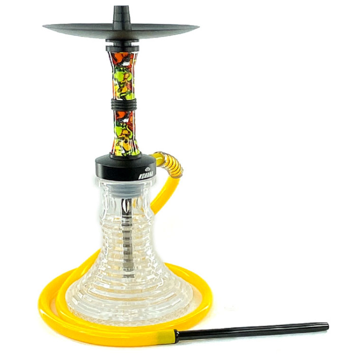 ● У комплекті ви знайдете колбу, шахту, блюдце, глиняну чашу, ущільнювачі для колби та чаші, силіконовий шланг, мундштук, щипці для вугілля і все це представлено у фірмовій коробці.