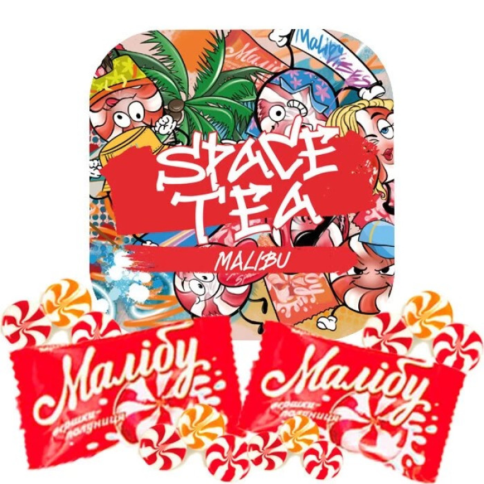 Space Tea Malibu — це екзотичний, солодкий та сонячний смак, натхненний однойменним коктейлем. У ароматі відчуваються ананас, кокос, манго та легкі тропічні відтінки, які створюють атмосферу відпочинку, тепла й безтурботності. Ідеально підходить для літнього паріння або вечірок у колі друзів.