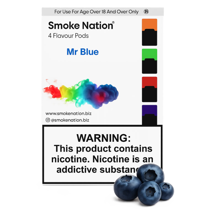 Картриджі Smoke Nation Mr Blue створені спеціально для використання з пристроями JUUL 1, поєднуючи якісний сольовий нікотин, насичений смак стиглої чорниці та зручний формат. Вони забезпечують м’яку, але виразну подачу пари з ягідною солодкістю та приємним післясмаком, ідеальним для щоденного використання.