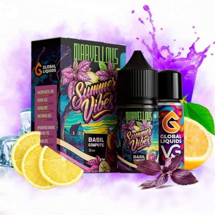 Marvellous Summer Vibes 30 мл Basil Compote – це свіжий подих серед фруктових ароматів, створений для тих, хто не боїться експериментів і цінує баланс природи та смаку.