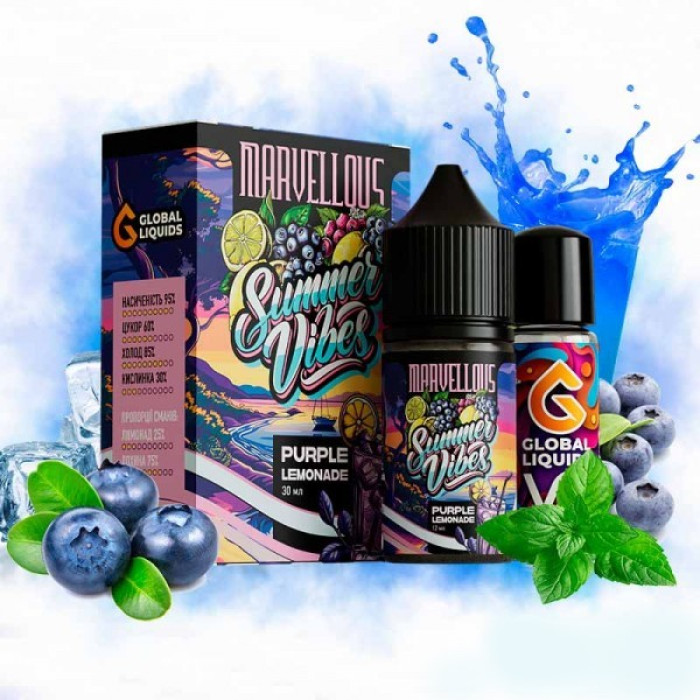 Marvellous Summer Vibes 30 мл Purple Lemonade — це чудовий вибір для тих, хто шукає баланс між фруктовою свіжістю і глибоким ягідним відтінком у кожній затяжці.