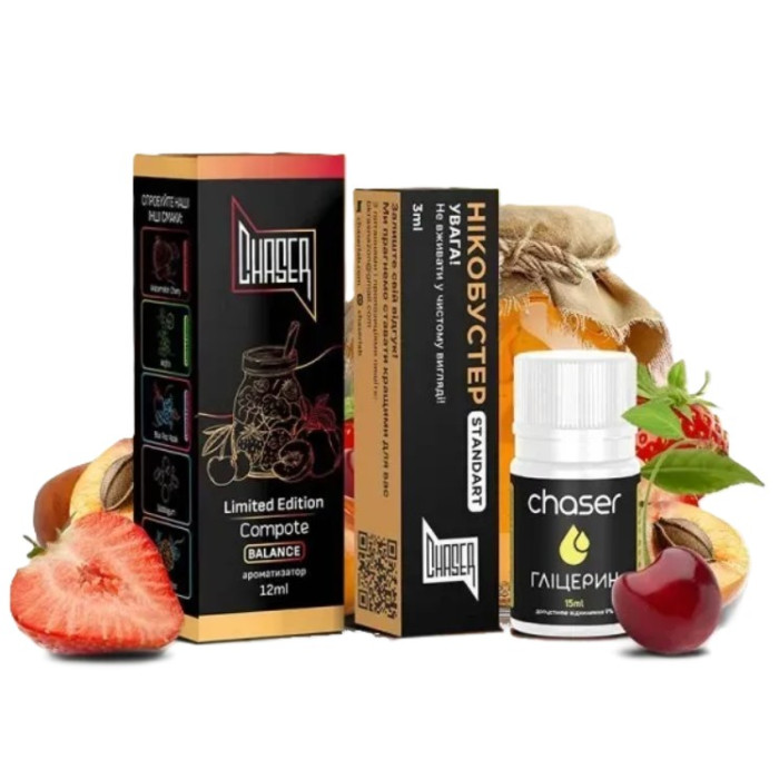 Опис НАБІР ДЛЯ САМОЗАМІСУ CHASER BLACK 30 мл "Compote" арбикос вишня суниця