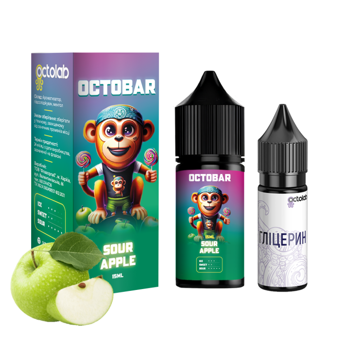 Набір для самозамісу OCTOBAR NFT 30 мл 50 мг "Sour Apple" зі смаком кислого яблука — найкраще для приємного дозвілля