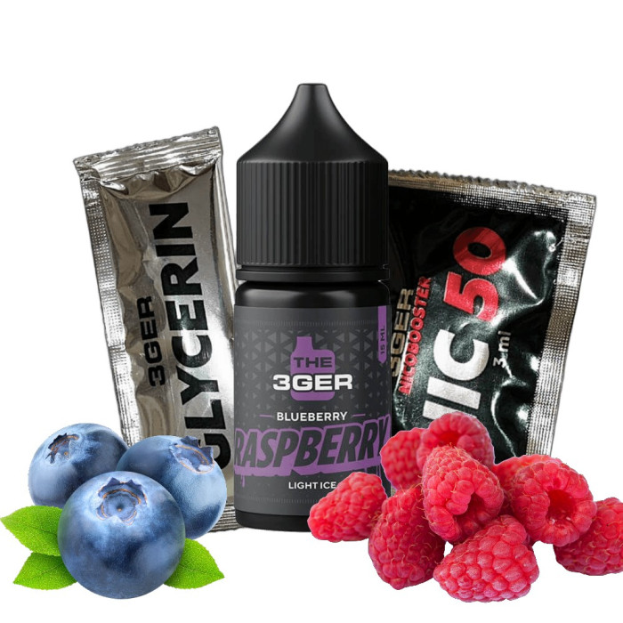 Набір для самозамісу THE 3Ger 30 мл 50 мг Blueberry Raspberry (Чорниця малина) — це готовий набір для створення рідини для вейпінгу з яскравим і насиченим смаком чорниці та малини. У комплект входить 30 мл бази з концентрацією нікотину 50 мг, що дозволяє створити рідину з бажаним рівнем нікотину. Blueberry Raspberry поєднує в собі солодкий смак чорниці з кислинкою малини, створюючи фруктову гармонію, що дарує свіжість та яскраві враження від кожної затяжки.