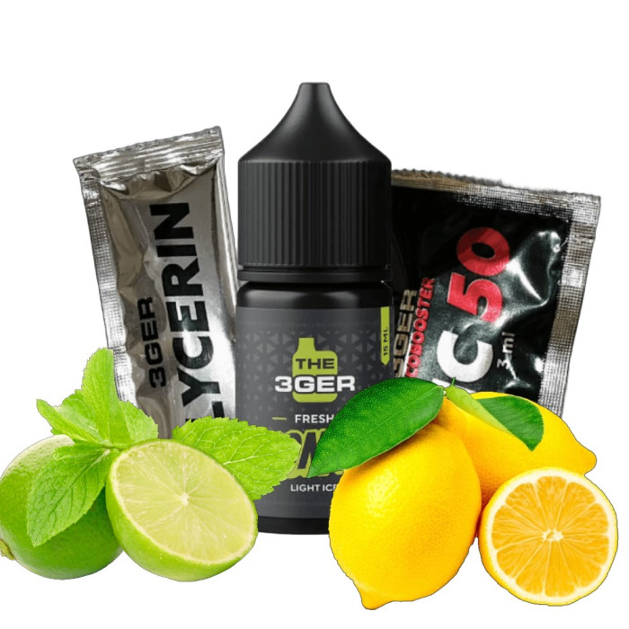 Набір для самозамісу THE 3Ger 30 мл 50 мг Fresh Lemon Lime (Лимон лайм) — це готовий набір для створення рідини для вейпінгу з яскравим і освіжаючим смаком лимона та лайма. У комплект входить 30 мл бази з концентрацією нікотину 50 мг, що дозволяє створити рідину з потрібним рівнем нікотину. Fresh Lemon Lime поєднує кислуватий смак лимона і лайма, додаючи цитрусової свіжості та легкості кожній затяжці.
