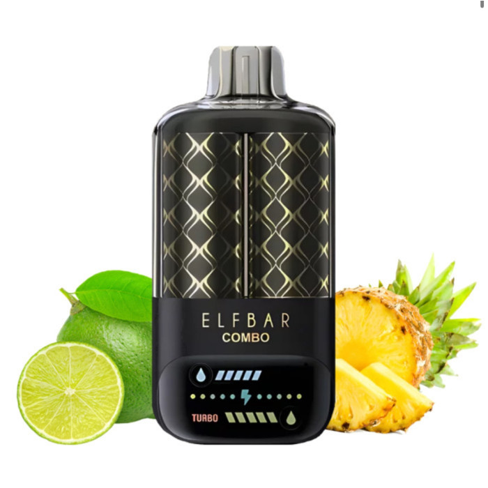 Elf Bar Combo 25000 "Lime-Pineapple" — це ідеальний мікс кислинки свіжого лайма та солодкості спілого ананаса. Аромат дарує відчуття тропічної свіжості та яскравих смакових акцентів, які ідеально підійдуть для насолоди у будь-який момент.