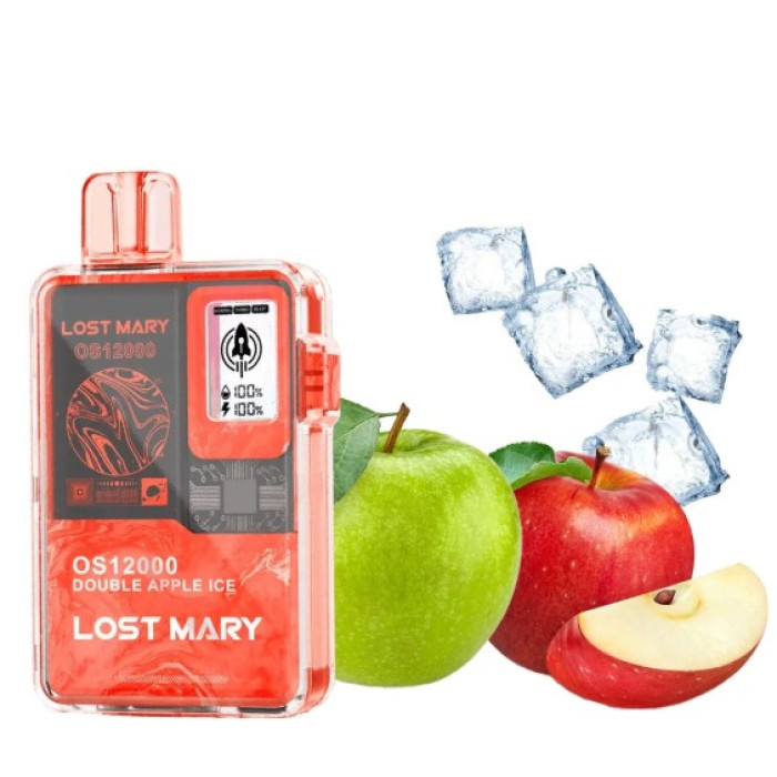 Одноразка Lost Mary OS12000 Double Apple Ice – класичне поєднання червоного та зеленого яблука з освіжаючим холодком