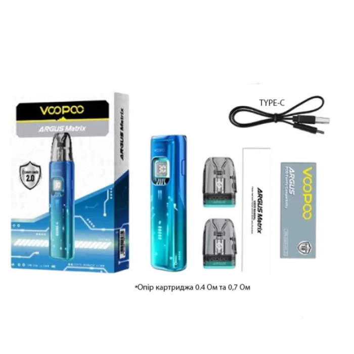 VooPoo Argus Matrix — це стильна та технологічна pod-система у витонченому блакитному кольорі, створена для комфортного та насиченого паріння щодня. Пристрій поєднує компактність, преміальний дизайн та продуману функціональність завдяки якісному корпусу з цинкового сплаву, швидкій зарядці та сумісності з картриджами ARGUS серії Top Fill V2.